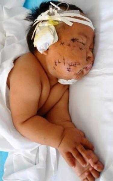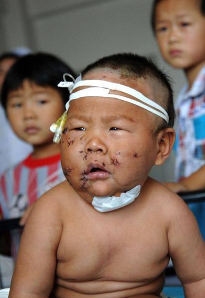 ولحسن الحظ، ما زال الطفل إكسياو باو، البالغ من العمر 8 شهور، حي يرزق بعد العدد الهائل من هذه الطعنات.