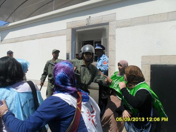 وأمام تواجد أمني كبير ،شوهد حوالي مائة معطلا وهم يصعدون أسوار وسطح المقر، فيما بقي الآخرون خارج المقر يصفرون، ويصرخون، ويصفقون .