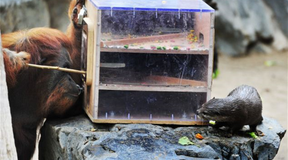 ويظهر أحد القردة في الصور وهو يحاول استخدام عود من الخشب للوصول إلى الطعام داخل القفص الخشبي، وسرعان ما انضم إليه حيوان القندس وحاول مساعدته عن طريق تثبيته وإيجاد الفتحة المناسبة.