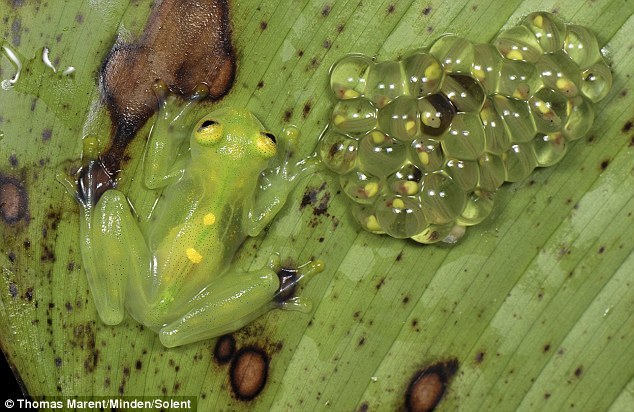 والتقط تلك اللقطات مصوّر الحياة البرية المحترف توماس مارينت، ولم يكتف بالتقاط صورٍ لهذا النوع النادر من الضفادع، بل صوّر بيضها الشفاف، الذي يخرج منه ضفادع أخرى ذات جسد زجاجي.