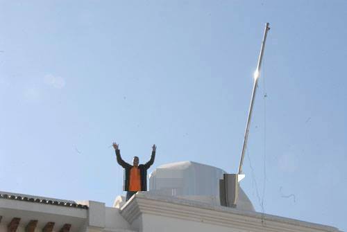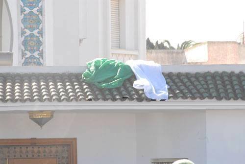 الناشط حميد النعناع من صفوف المغاربة المهاجرين بالديار الإيطالية، غافل الحراسة الأمنية لاعتلاء مقر القنصلية العامة والوصول إلى موقع الراية بواجهتها.