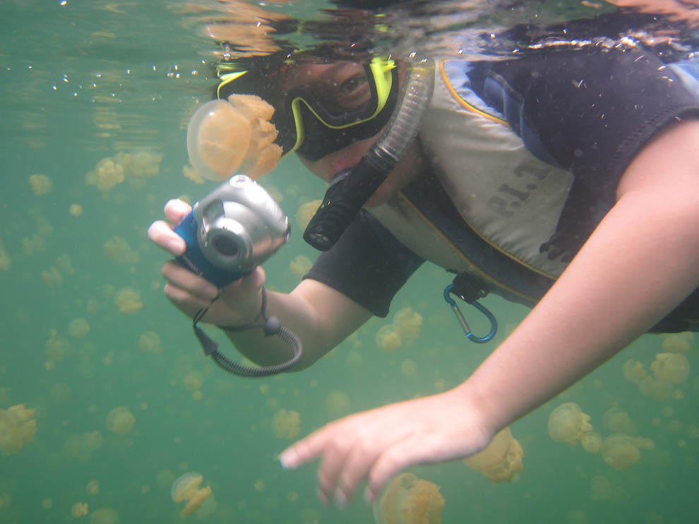 المظهر الخلاب لقناديل البحر يجذب الكثير من السياح إلى البحيرة بهدف الغوص. وتعتبر السباحة في الحيرة آمنة كون قناديل البحر قد فقدت القدرة الشبه تامة على "اللدغ". ومع ذلك، ينصح بعض الأشخاص من ذوي الجلد الحساس أو الذين يعانون من الحساسية، باستخدام بدلات واقية.