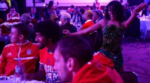 وقام بعض لاعبي الفريق البافاري بالرقص مع الراقصات وأبرزهم المهاجم مولير الذي لم يتوقف عن الرقص طيلة الحفلة.