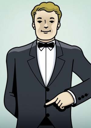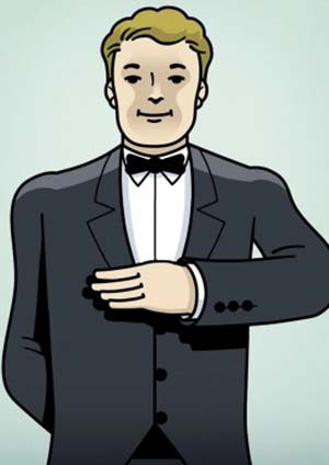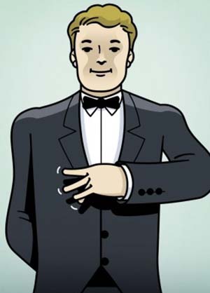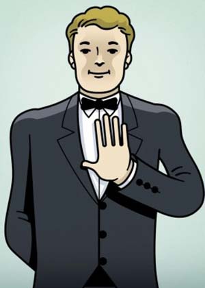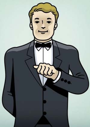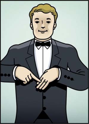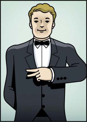 9- وضع النادل يده على طية السترة تعني أنه بحاجة إلى المساعدة من أحد زملائه.