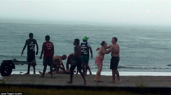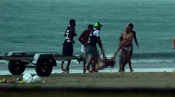 وقال الزوج لوسائل الإعلام المحلية إن زوجته توجهت إلى البحر لإخراج ابنهما وأقربائه من المياه بسبب العاصفة التي كانت تقترب، فقام بإحضار سيارته وجمع الأغراض للمغادرة على الفور، ولكنه فجأة شاهد زوجته ملقاة على الأرض.