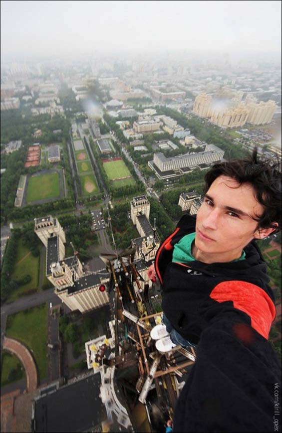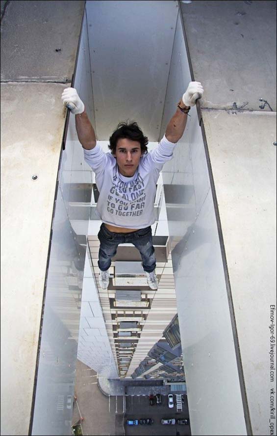 وظهر كريل أوريشكين من مدينة موسكو في الصور على ارتفاعات شاهقة بمئات الأمطار فوق سطح الأرض متمسكاً بيديه تارة وبيد واحدة تارة أخرى، والابتسامة تعلو وجهه وكأنه يلتقط صور تذكارية في منتزه أو حديقة عامة.