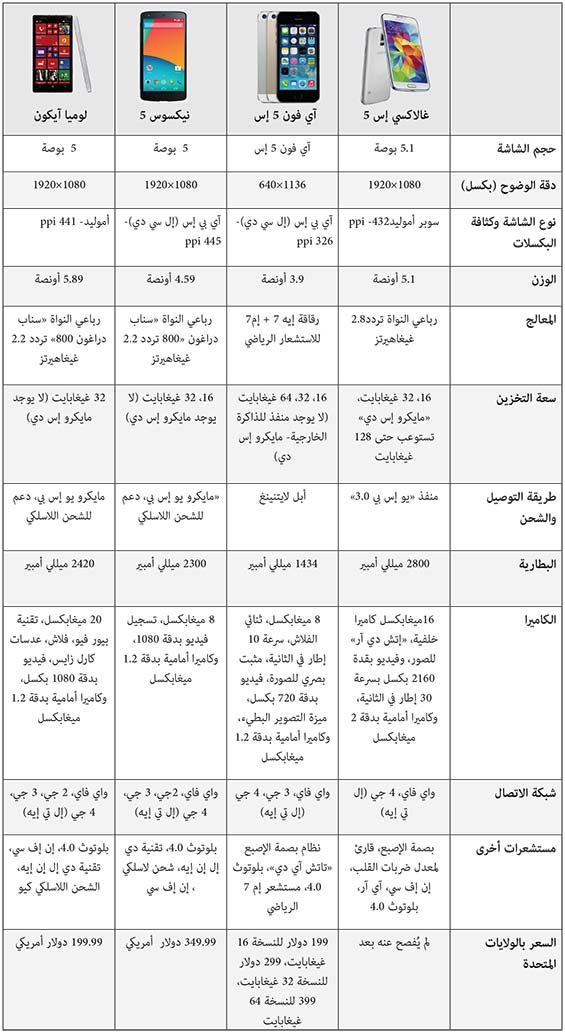 وفي الجدول أدناه نستعرض مقارنة تطال جميع الجوانب والمواصفات التقنية بين تلك الهواتف السالف ذكرها.