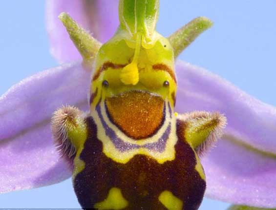 تمكن المصوّر البريطاني ديفيد تشابمان من إثبات أن هذه الشخصية موجودة في زهرة أوركيديا نادرة يطلق عليها "سحلية النحل" أو "أوركيديا النحل" Ophrys Apifera أو bee orchid.