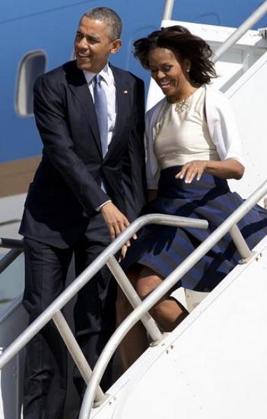 وأشارت الصحيفة البريطانية إلى أنه لدى صعود أوباما وزوجته الطائرة الرئاسية في مدينة هيوستن، في طريقهما إلى مدينة "أوستن" بولاية تكساس للمشاركة في الذكرى الخمسين لقانون الحقوق المدنية، بدأت تنورة السيدة الأولى في الطيران بقوة.