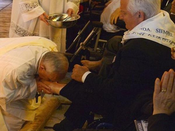 وقام البابا بغسل وتقبيل أرجل 12 شخصاً من مختلف الديانات والجنسيات من ذوي الاحتياجات الخاصة، أعمارهم بين 16 و86 سنة، منهم 3 أفارقة، وليبي اسمه حامد "ويعاني من تشنج شبه دائم من اعاقة بجهازه العصبي نتجت عن حادث سيارة تعرض له.
