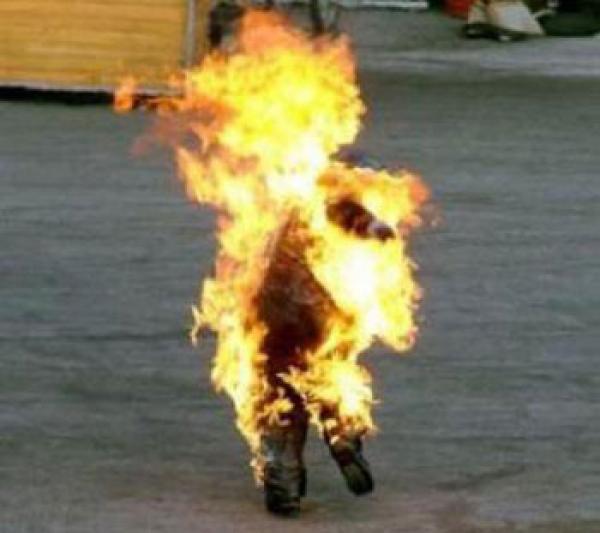 وبحسب الصحيفة، فإن هناك روايتين لما جرى بعدما صب الشاب البنزين على نفسه، ففي حين تقول رواية أولى إنه عمد لاحقا إلى إشعال النار في نفسه، تقول رواية ثانية إن شخصا آخر هو الذي أضرم النار فيه.