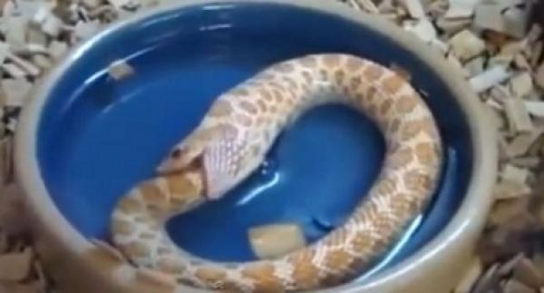 وقالت الصحيفة البريطانية عبر موقعها الإلكتروني، أدرك الثعبان المدلل “ريجي الملك”، وهو من نوع ملكة الأفاعي البريطانية خطأه، عندما تمدد على ظهره وعجز عن تحرير ذيله من فمه بعد أن غرز نابيه عميقا فيه.