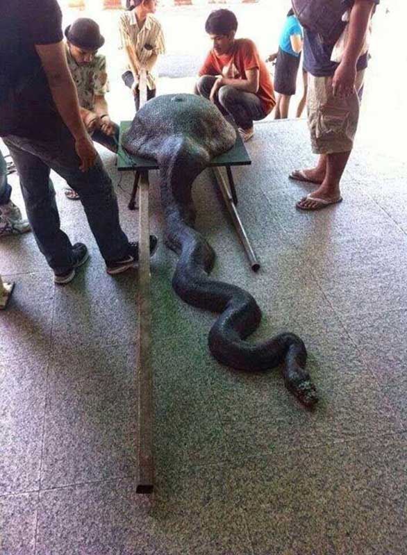 وبحسب الصورة التي نشرها موقع مترو البريطاني، تظهر الأفعى وكأنها ابتلعت مقلاة حديدية كبيرة وذلك من خلال حواف المقلاة بشكل واضح داخل جسمه، بيما لم يشر الموقع عن مصيرها بعد ابتلاعها هذا الجسم الغريب.