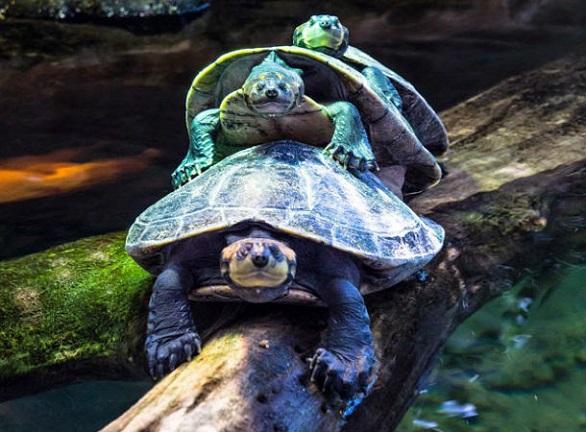 وقالت صحيفة دايلي ميل البريطانية: "هذه القصة المضحكة لهذه السلاحف التقطها المصور النمساوي "هانزجورج " في حديقة "أكوا تيرا" للحيوانات في العاصمة النمساوية فيينا".