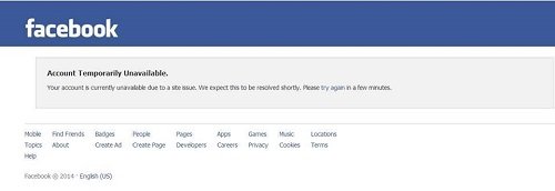 اشتكي عدد من مستخدمي موقع التواصل الاجتماعي فيس بوك، من عطل طارئ بالموقع، حيث ظهرت رسالة لعدد من المستخدمين تفيد بأن هذا الحساب غير موجود.