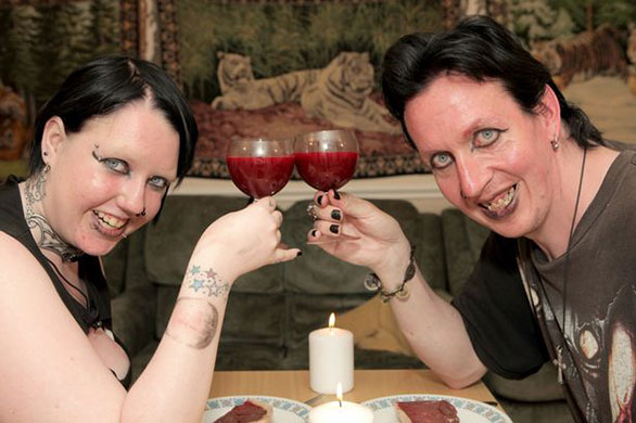 يتشارك آرو دريفن وليا بينينغوف أكثر مما يتشاركه أي زوجين في العالم، حيث يحتسي كل منهما كمية من دم الآخر أسبوعياً، والتقى الزوجان على أحد مواقع التعارف على الإنترنت في فبراير (شباط) من العام الماضي، ومنذ ذلك الوقت وهما يمارسان هذه الطقوس الغريبة في التعبير عن الحب.