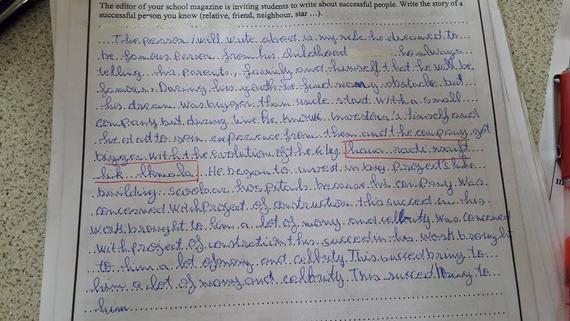 من خلال الصورة يظهر أن المترشح إستعمل هاتفا نقالا اثناء الغش ، و الطريف في الأمر أن الطالب لا يفرق بين اللغة الإنجليزية و الدارجة المغربية حيث نقل حرفيا كل جملة أرسلت إليه . و لم يجهد نفسه حتى بقراءة النص ليحرر في ورقته عبارة :"غادي نصيفط ليك لكمالة" ..التي قصد بها صديقه - الذي ساعده على الغش - أنه سيرسل له بقية المقال .