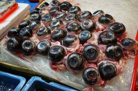 يمكن اعتبار هذا الطبق من الأكثر إثارة للاشمئزاز بين قائمة الأطعمة الأغرب في العالم، ويمكن العثور على كرات عيون سمك التونا بسهولة في أسواق الصين واليابان، ويتم إعدادها في المطاعم وإضافة التوابل والبهارات إليها للراغبين في تناول هذا الطبق الغريب.