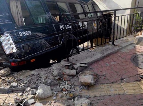 وكان الشرطي بارك (35 عاماً) في طريقه إلى قسم الشرطة بمقاطعة " شاندونج" شرق الصين، حين لمح سيارة تسير على الجانب الخطأ من الطريق، فأسرع بمطاردتها، ليجد نفسه في أغرب مكان وقد علقت سيارته في الطابق الثالث فوق الشارع.