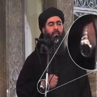 انفردت جريدة "صنداي تلغراف" البريطانية بتسليط الضوء على الساعة التي كان البغدادي يرتديها بيده اليمنى، حيث أشارت إلى أنها الشيء الواحد الذي كان شاذاً في المظهر العام للرجل الذي كان يرتدي ملابس سوداء وعمامة على هيئة آخر الخلفاء المسلمين الذين حكموا بغداد.