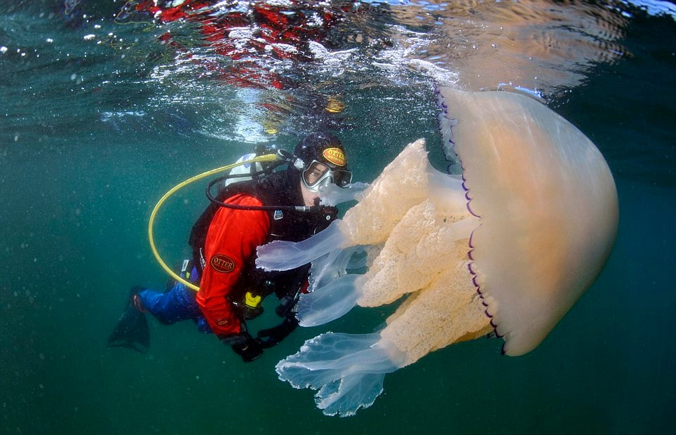 تحت عنوان” غزوة قناديل البحر العملاقة”، كشفت صحفية “ديلي ميل” البريطانية عن مجموعة من اللقطات المذهلة لقناديل بحر ضخمة بعد تجمعها قبالة ساحل مدينة كورنوول في بريطانيا.