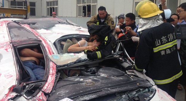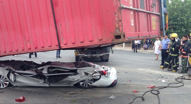 القدر لعب دوره فى هذا الحادث الخطير، الذى ترعضت له امرأة أثناء قيادتها لسيارتها وبجانبها صديقها على طريق فى مدينة تشينغداو فى مقاطعة شاندونغ بشرق الصين، بعد انقلاب شاحنة كبيرة، ألقت بحاوية تزن عشرات الأطنان كانت تحملها على السيارة، مما أدى إلى سحق السيارة، بما يوحى لمن يراها أن ركابها تحولوا إلى أشلاء، ولكنهم فى الحقيقة نجوا منها وخرجوا أحياء بأعجوبة.