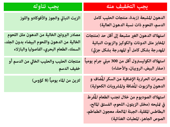اقرأ بطاقات الأطعمة التي تشتريها مع قائمة المكونات لتتأكد عدم احتوائها على الأحماض الدهنية المشبعة والكولسترول.