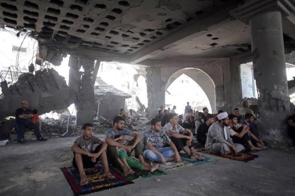 تداول فيسبوكيون صورا جد مؤثرة لمصلين فلسطينيين يؤدون صلاة الجمعة بغزة الجريحة تحت الأنقاض و ركام المساجد ، و لم تمنعهم الحرب الدائرة رحاها و لا الصواريخ و لا أي شيء من هذا القبيل من القيام بهذا الواجب الديني .