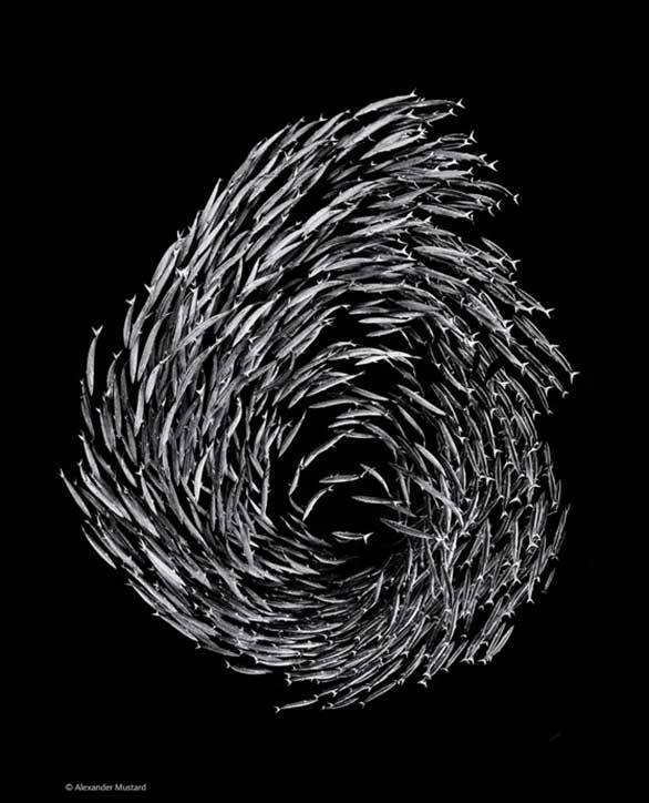 أسماك البراكودا أخذت في لقطت متميزة لتبدة كدوامة من زاوية تختلف عادة عما نراها عليه.