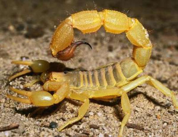 ويعتقد العلماء ان من بين ال 1500 نوع من العقارب الموجودة، عبر العالم، يوجد 50 نوعا فقط مؤذياً للانسان، والعقارب بشكل عام ضعيفة الرؤية حتى انها تكاد لا ترى، كما انها لا تسمع ولا تشم، بل تعتمد على الذبذبات الصوتية والاهتزازات لمعرفة اتجاه فريستها حيث ان أرجلها الثمانية تحيط بها من جميع الجهات وبشكل دائري وتوجد عليها اشواك شعرية حسية تستقبل اهتزازات الهواء لتحديد اتجاه فريستها.