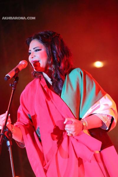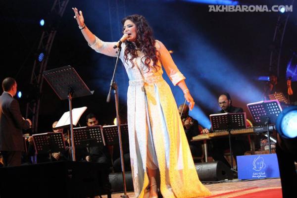 و صعدت النجمة الإماراتية الى الخشبة بعد منتصف الليل وسط حضور جماهيري كبير قدر بازيد من 25 الف شخص حضرورا لساحة فضاء مسرح الولاية للاستمتاع بأجمل أغاني ملكة الغناء الخليجي التي ظهرت بزي مغربي رائع و بحضور زوجها مبارك الهاجري.