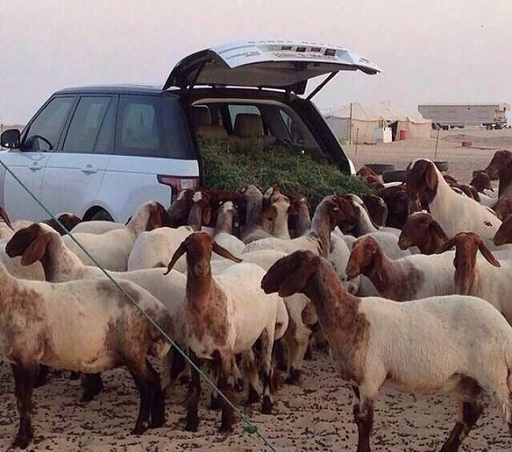 ويظهر في الفيديو المنشور على يوتيوب مستقطباً آلاف المشاهدات سيارة بيضاء من نوع "رانج روفر" موديل 2014، محملة بالبرسيم في مزرعة أغنام بالسعودية.