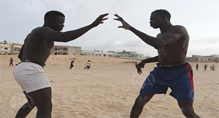 في داكار، على ضفاف بحر “يوف” في “غيداواي”، يتمرن العشرات من الشبان لتحسين لياقتهم وتطوير مهاراتهم في رياضة المصارعة السنغالية.