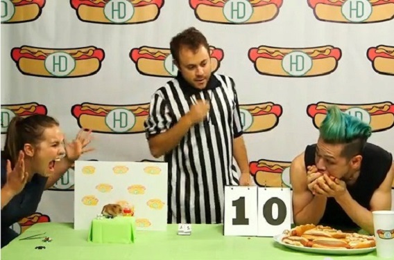 بالفيديو: هامستر يفوز على ياباني في مسابقة أكل الهوت دوغ