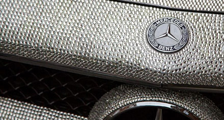 فوجئ المارة في شوارع “نايتس بريدج” بلندن بسيارة مرسيدس CLS 350 مرصعة بمليون كريستالة من كرستالات سوارافيسكس .