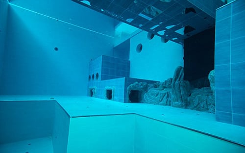 داخل فندق "تيرمي ميليبيني" Terme Millepini بمقاطعة "مونتيغروتو تيرمي" بإيطاليا وبعمق 40 مترا، شيد المهندس المعماري "إيمانويل بوريتو" أعمق حوض سباحة في العالم والذي بدأ العمل به في يونيو الماضي، ويمثل عمقه ارتفاع مبنى من 12 طابقاً، وهو العمق الذي يمنح الزائرين المشاركة في العديد من أنشطة البحر المعروفة مثل الغوص الحر Free Diving والغوص تحت الماء Scuba Diving، والعلاج المائي Hydro- Kinsi، بالإضافة إلى تدريبات للمبتدئين الذين تم بناء كهوف لهم تحت الماء