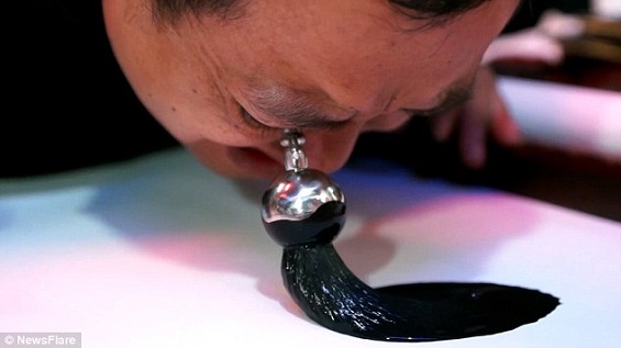 ويقول الفنان الصيني إنه بدأ تعلم رسم الخط العربي حين كان في الثامنة من عمره، وبدأ يمارس "الرسم بالعين" منذ 16 عاماً.