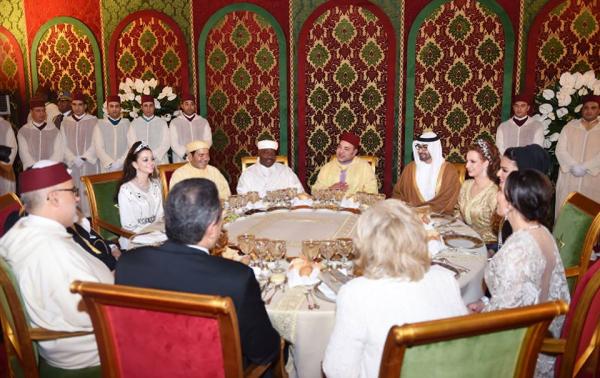 وبهذه المناسبة، أخذت صور تذكارية لصاحب الجلالة الملك محمد السادس، حفظه الله، وصاحب السمو الملكي ولي العهد الأمير مولاي الحسن، مع الزوجين الشابين . كما أخذت للزوجين صور تذكارية مع أصحاب وصاحبات السمو الملكي الأمراء والأميرات الجليلات، وأفراد الأسرة الملكية الشريفة، والضيوف المرموقين .