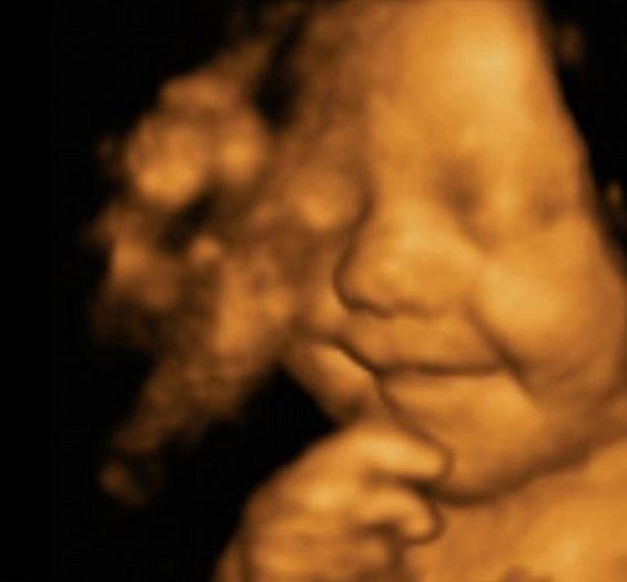 هذه الصورة مأخوذة من بجهاز الموجات فوق الصوتية رباعية الأبعاد "الألتراساوند" في الأسبوع الـ31 من عمر الجنين، والآن يبلغ الطفل الذي سُمى بـ"ليو هارغريفس" من العمر 5 شهور، ويتسم بضحكته البشوشة ووجهه الضاحك المبتسم دائماً والذي بدأ ابتسامته البريئة منذ قبل ولادته.