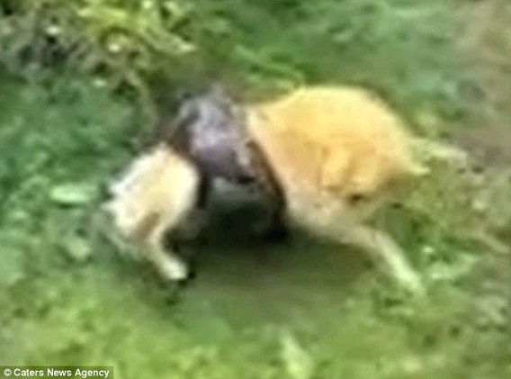 وظهر في بداية الفيديو الذي نشرته صحيفة دايلي ميل البريطانية الكلب شبه ميت، إذ كان مشلول الحركة تماماً أثناء قيام الأفعى بإحكام جسدها على فريستها غير أن النهاية لم تجر كما تشتهي هذه الأفعى بعدما تدخل صاحب الكلب وأجبرها على تحرير الكلب.