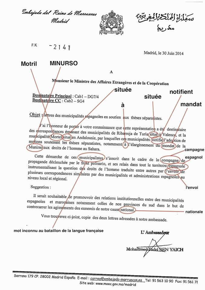 المخجل في الأمر أن الوثيقة المذكورة مذيلة بتوقيع سفير المغرب بإسبانيا مما يمس بسمعة المملكة المغربية ككل.