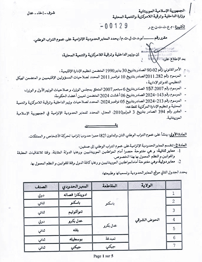 أعلنت موريتانيا أمس الثلاثاء، بشكل رسمي عن اعتماد 82 معبرًا حدوديًا، في خطوة تروم تنظيم حركة الأشخاص والبضائع، وتعزيز الانفتاح الاقتصادي وتحسين البنية التحتية اللوجستية مع دول الجوار.
