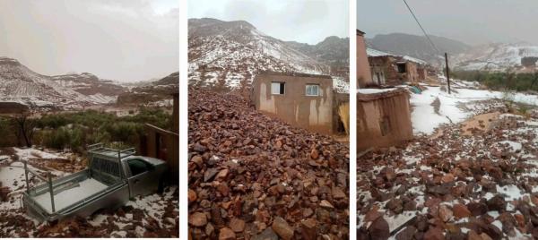 أطلقت ساكنة دوار إكرزكى إكرنان بإقليم ورزازات نداء استغاثة عاجلاً جراء الفيضانات التي ضربت المنطقة بعد هطول أمطار غزيرة وموجة من البرد الذي ناهز ارتفاعه 30 سنتيمترًا.