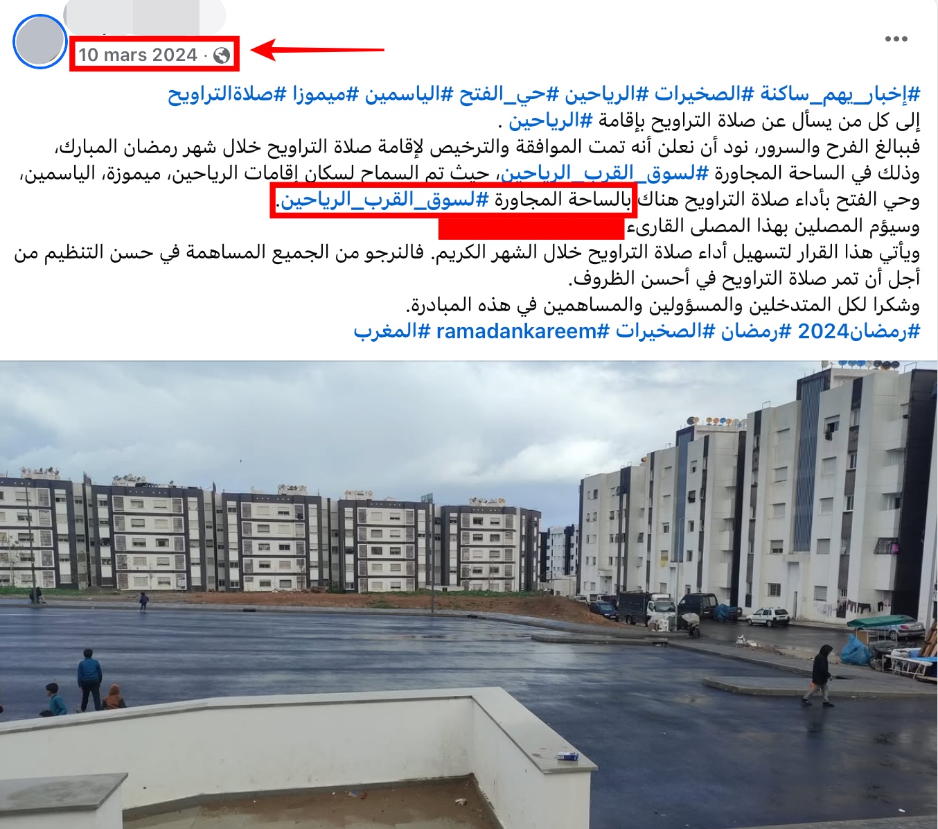 على بعد أيام قليلة من شهر رمضان الأبرك، ستكون ساكنة إقامتي الياسمين والرياحين بالصخيرات، والمقدر تعدادها بأزيد من 15 ألف نسمة -ستكون- مضطرة للبحث عن فضاءات لأداء صلاة التراويح، بعد تعذر للموسم الثاني على التوالي بناء المساجد التي كان مقررا إحداثها بهذا التجمع السكني الجديد الذي خصص لإعادة إيواء قاطني دور الصفيح بتراب إقليم تمارة.