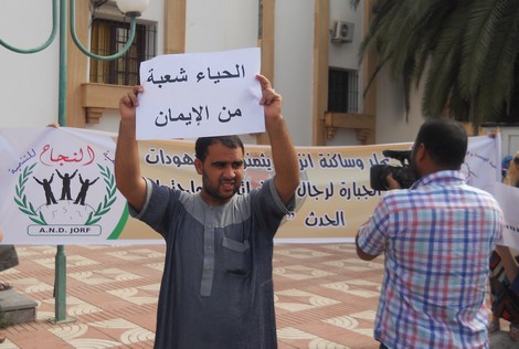 وقد رفع التجار الذين ينتمون لجمعية الوحدة والتضامن لتجار سوق الثلاثاء وجمعية النجاح للتنمية بالجرف عددا من الشعارات من قبيل "شكون الشعب .. المغرب أرضي..، "سياحة جنسية، أولاد الشعب الضحية" ..، "المساواة الفعلية حرية كرامة عدالة اجتماعية"، وينتظر أن تنطق المحكمة في أول جلسة لها بالحكم في القضية التي أثارت الرأي العام، أو التأجيل.