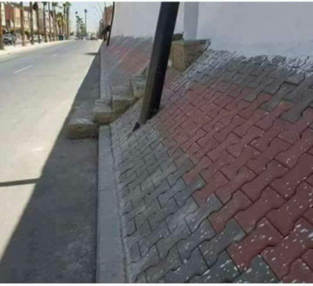 و توضح الصورة أن الرصيف تم تشييده بشكل مائل تماما، حيث ورد في أحد التعليقات "خاص تكون بوصيحة باش تدوز فيه!!".