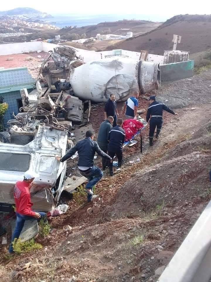 وحسب مصادر محلية، فإن الشاحنة المتخصصة في نقل مواد البناء، انقلبت في منحدر ، محدثة بعض الأضرار في منزل متواجد بجانب الطريق.