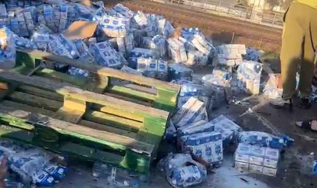 ووفقا لشهود عيان، وقع الحادث نتيجة فقدان السائق السيطرة على المركبة عند منحدر حاد، ما تسبب في انقلاب الشاحنة على جانب الطريق، ما خلف أضرارا جسيمة بالشاحنة، فيما غطت عبوات الحليب الطريق، ما أحدث اضطرابات في حركة السير.
