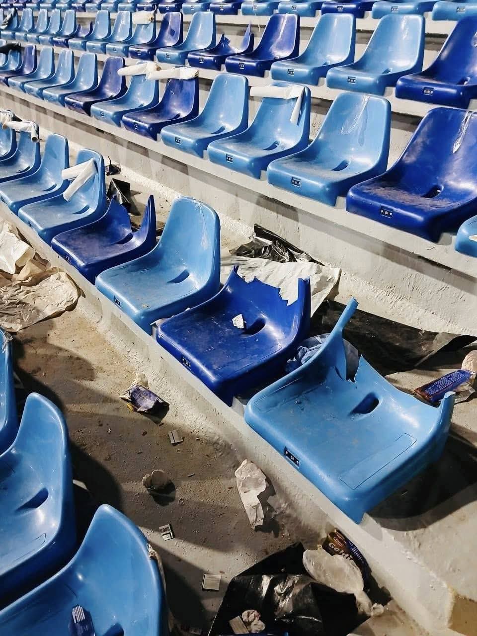 وتم توثيق عمليات تكسير طالت الكراسي والمرافق الخاصة بالمدرجات، ما خلّف استياءً واسعاً في الأوساط الرياضية.
