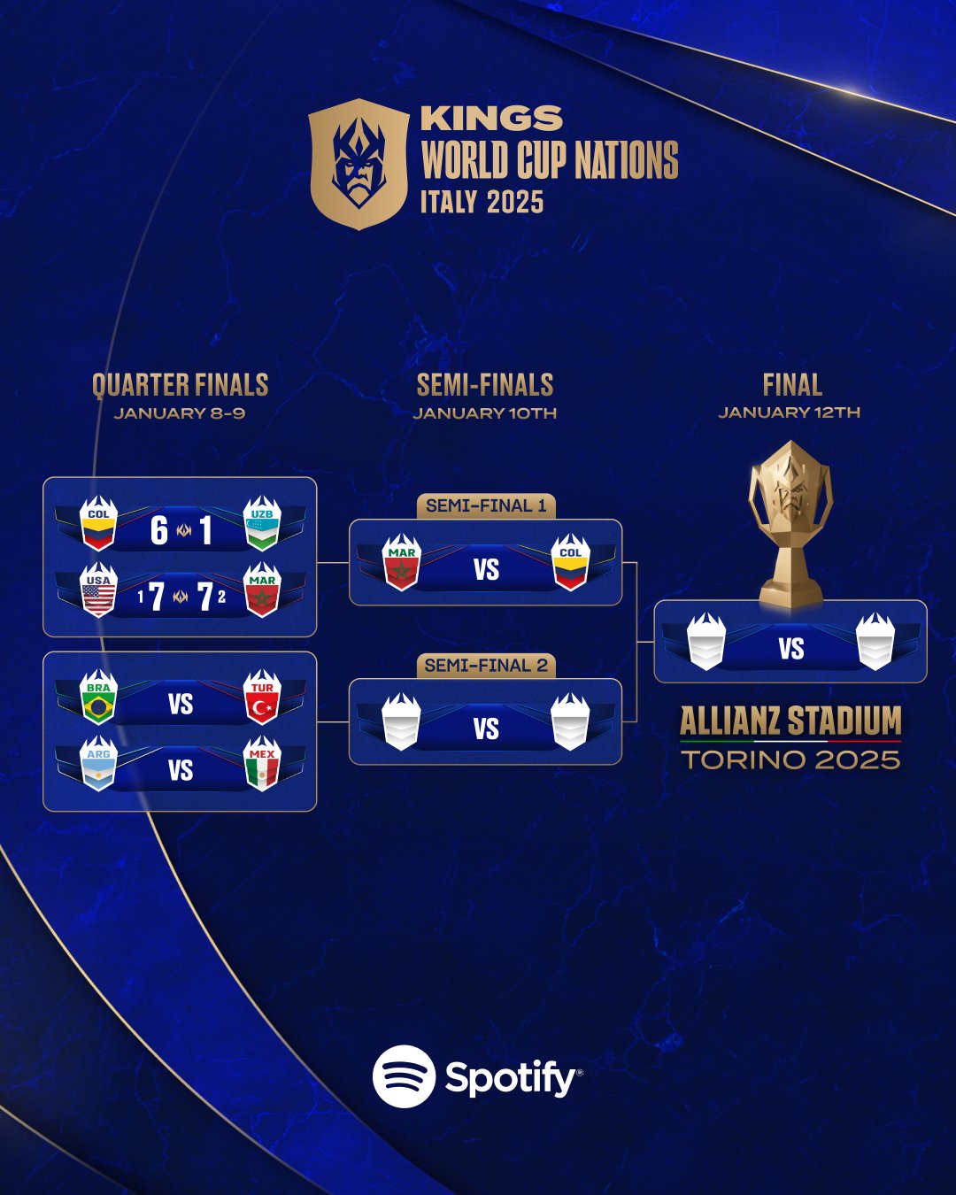 من المقرر أن يواجه المنتخب المغربي نظيره الكولومبي في نصف النهائي بعد غدٍ الجمعة. يُذكر أن المنتخب المغربي كان قد خسر أمام كولومبيا بنتيجة 4-1 في وقت سابق من البطولة.
